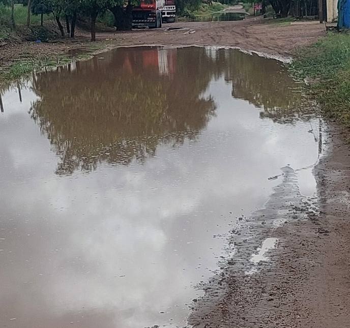 Se trata de un camino fundamental para la circulación diaria de vecinos, trabajadores, estudiantes y personas que deben trasladarse hacia centros de salud. Sin embargo, cada vez que se producen lluvias, incluso de pocos milímetros, el carril queda prácticamente intransitable debido a la acumulación de agua en grandes pozos que se extienden por cientos de metros.