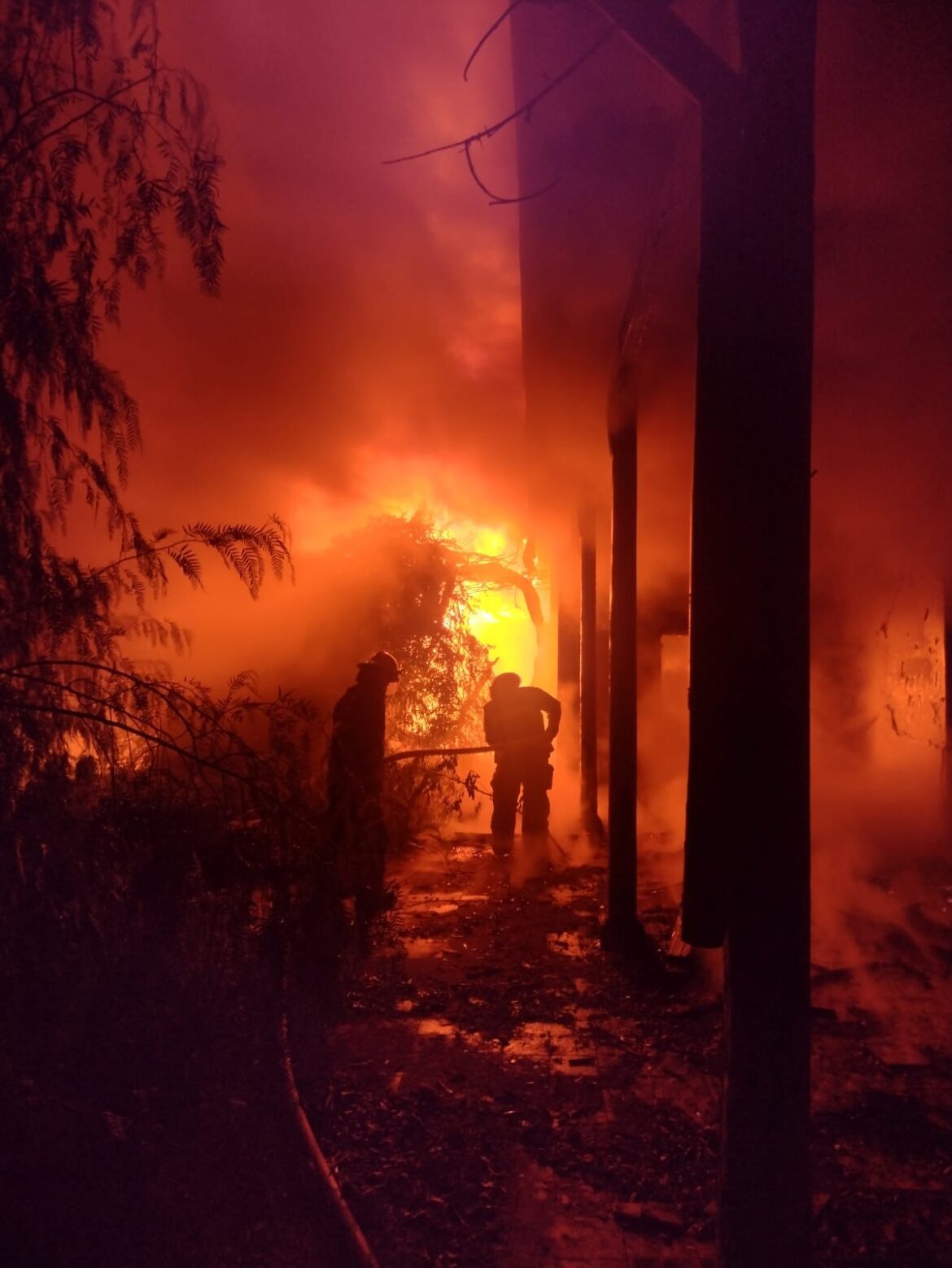 Según la información oficial, al arribar constataron que el incendio afectaba distintos elementos en desuso dentro de la bodega, entre ellos techos de caña, estructuras de palo rollizo, chapas, además de puertas y ventanas de madera.
