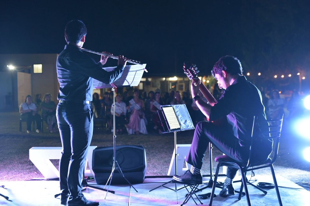La propuesta principal estuvo a cargo del Dúo Soto Indovino, que ofreció un repertorio de flauta y guitarra en una noche que, más allá de la música, también tuvo un fuerte componente cultural y social.