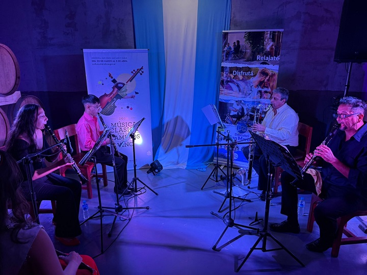 En el marco del ciclo Música Clásica por los Caminos del Vino, organizado por el Gobierno de Mendoza y la Comuna, se presentó el ensamble Clarinotes en la Bodega Buono B, en una velada que convocó a numerosos vecinos. La actividad fue a beneficio del Banco de Alimentos. Acompañó la velada la Reina Departamental de la Vendimia Valentina Rosalez, el director de Turismo Jorge Corrales y el director de Cultura Alfredo Lafferriere.