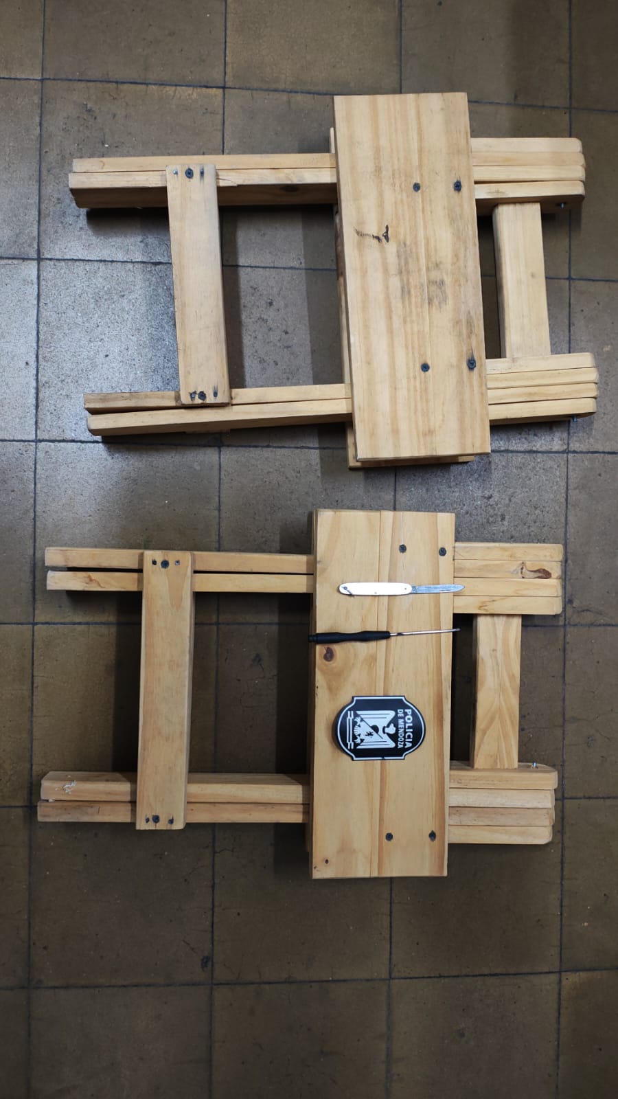 A pocas cuadras del lugar, los efectivos lograron la aprehensión de uno de los presuntos autores, a quien se le secuestraron dos banquitos de madera que habían sido sustraídos del taller.