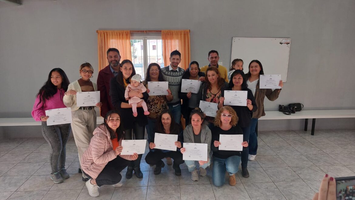 Más de 60 personas de Ciudad de Junín y Los Barriales recibieron el certificado correspondiente. Participaron de la entrega Ariel Ortiz, secretario de Gobierno; Gabriel Agüero, director de Aulas Móviles; Débora Funes, a cargo de la Oficina de Empleo departamental; y Rogelio Ramírez, delegado Zona Oeste.