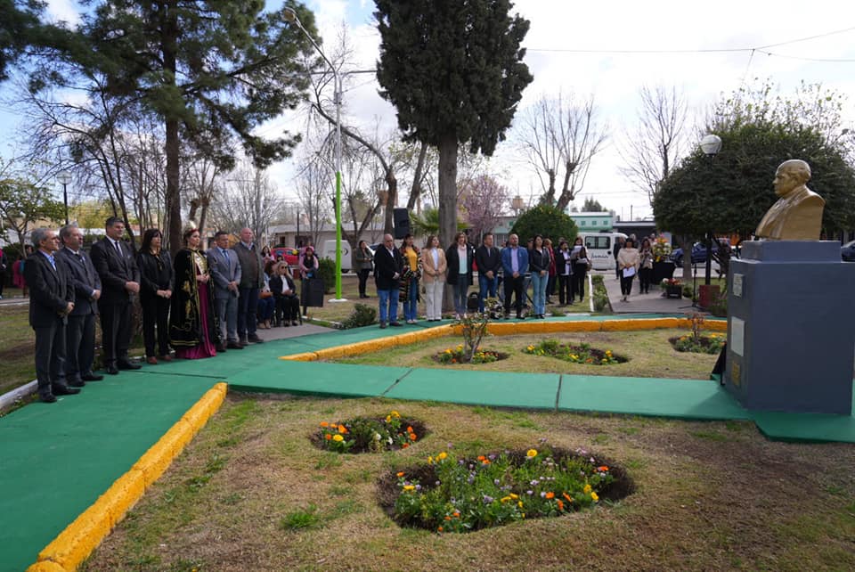La oportunidad fue propicia para colocar una ofrenda floral en el busto del prócer Domingo Faustino Sarmiento, ubicado en el corazón de la plaza, que conmemora la labor de los docentes, además de un respetuoso minuto de silencio en su honor.