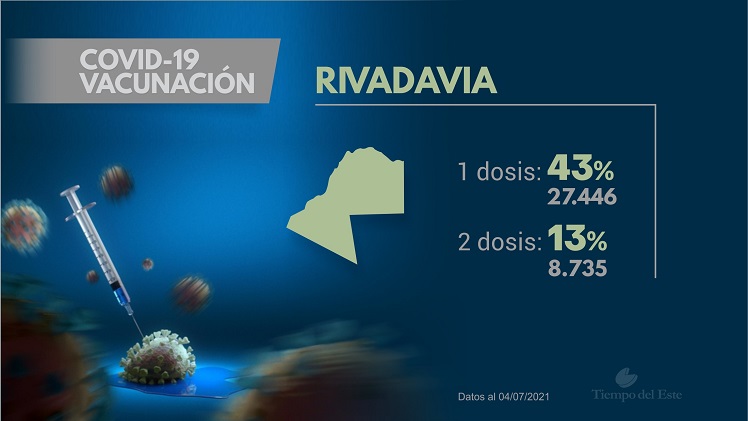 De acuerdo a datos correspondientes hasta el 4 de julio, 27.446 rivadavienses ya se inocularon con la primera dosis contra el COVID-19. Esto equivale al 43% del total de la población. El departamento con mayor porcentaje de personas vacunadas en la provincia es Junín, que ya superó el 50%.