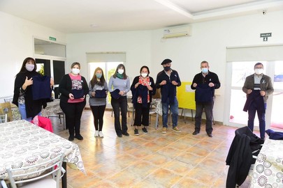 Adultos Mayores del Centro de Día El Jarillal hicieron entrega de pantalones, bufandas y cuellitos confeccionados por ellos mismos al Intendente Héctor Ruiz, que serán destinados a niños y niñas de los jardines maternales del departamento.