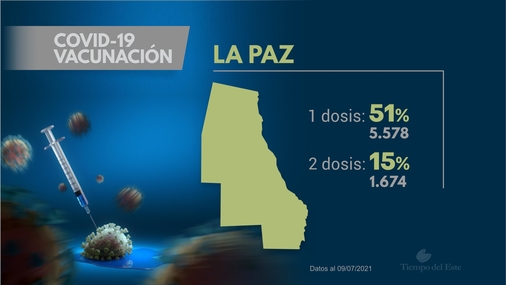 Por otra parte, La Paz es el segundo departamento con mayor porcentaje de sus habitantes inoculados con ambas dosis, con el 15%. Solo por detrás de Santa Rosa, que alcanza el 17%.