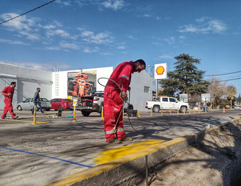 Continuando con el ordenamiento vehicular en la rotonda de ingreso a Ciudad de Junín, el municipio lleva adelante distintos trabajos.