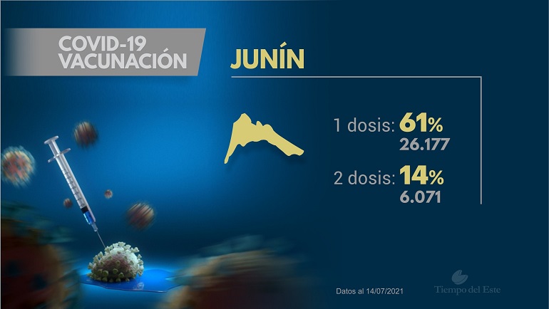 De acuerdo a datos correspondientes hasta el 14 de julio, son 26.177 los juninenses que ya recibieron la primera inoculación. Además, 6.071 personas (14%), ya cuentan con su calendario de vacunación completo.