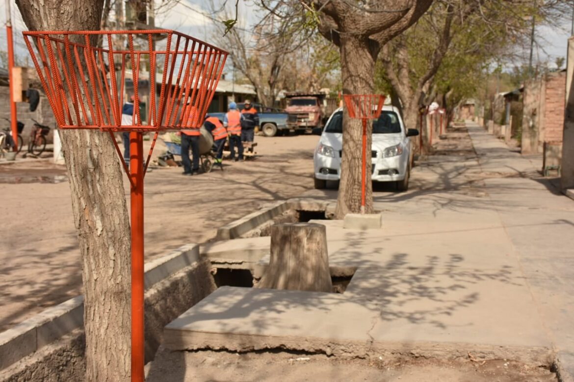 La comuna explicó que avanza el plan de mejoramiento en el barrio y que la obra contempla la refuncionalización de los sistemas de riego y desagüe, cordón, cuneta, banquina, puentes peatonales y cestos de residuos domiciliarios.