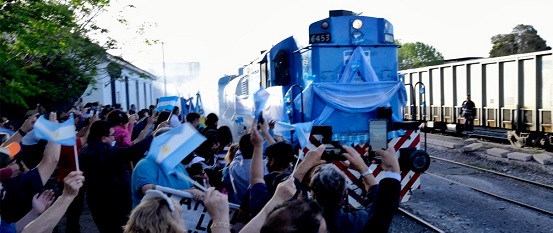 El tren fue recibido por Alicia Soraire, secretaria de Abordaje Integral del Ministerio de Desarrollo Social de la Nación, David Santoni del Ministerio de Salud de la Nación, Jorge Omar Giménez, Coordinador Nacional de Ferrocarriles Argentinos y la senadora nacional Anabel Fernández Sagasti, se informó en un comunicado.