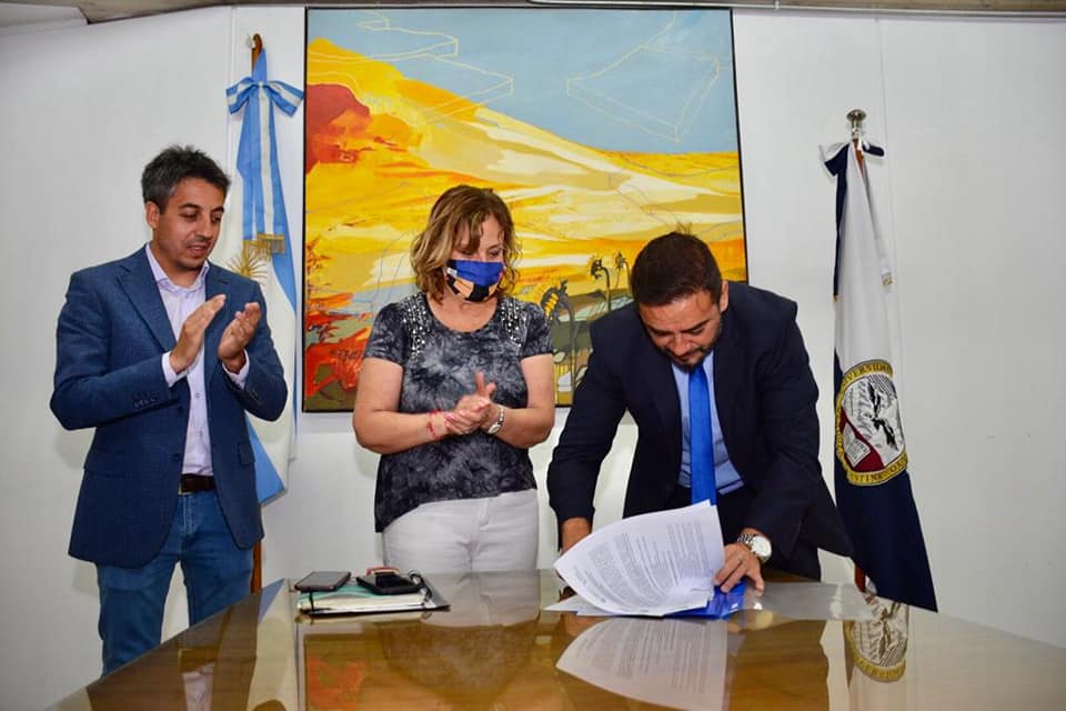 El intendente de La Paz, Fernando Ubieta, junto a la Decana de la Facultad de Ciencias Políticas y Sociales de la UNCuyo, Claudia García, firmó un convenio para certificar la creación de la primera carrera universitaria de La Paz, en el marco de la conformación del Polo Educativo departamental. Se trata de la Tecnicatura en Gestión y Administración en Instituciones Públicas (TUGAIP), que formará parte de la oferta educativa que ofrecerá la institución.
