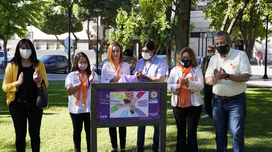 Por otro lado se llevó adelante el descubrimiento del cartel de concientización realizado con material reciclado que será replicado en todas las plazas distritales, con el objetivo de promover la No Violencia contra la mujer.