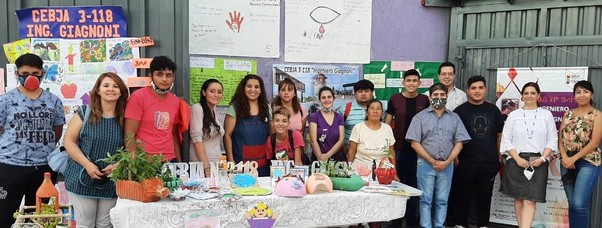 Hugo González, Director del CCT 6-304 y Laura García, Directora del CEBJA 3-118, junto a los alumnos, dieron detalles de los trabajos presentados.
