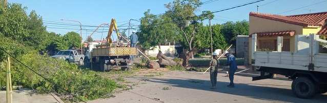 - En calle Avenida Libertador, San Martín, Carril Barriales (frente a barrio Aguaribay), Alvear y Barrio Villa Nueva Colonia Plantel se registraron grandes caídas de árboles.