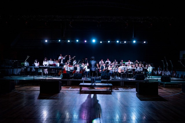 El estadio cubierto La Colonia fue el escenario elegido para el cierre anual de la Escuela Municipal de Música, a cargo de la Dirección de Producción Artística y con la participación del Coro Infantil, de adultos y el ensamble en formación de orquesta.