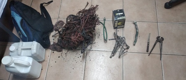 Según indicó el Ministerio de Seguridad, la policía rural patrullaba la zona cuando aprehendieron a dos sujetos, a la salida de una vivienda. Al revisarlos descubrieron que los malvivientes llevaban dos bidones de fertilizante y 15 kilos de cobre.