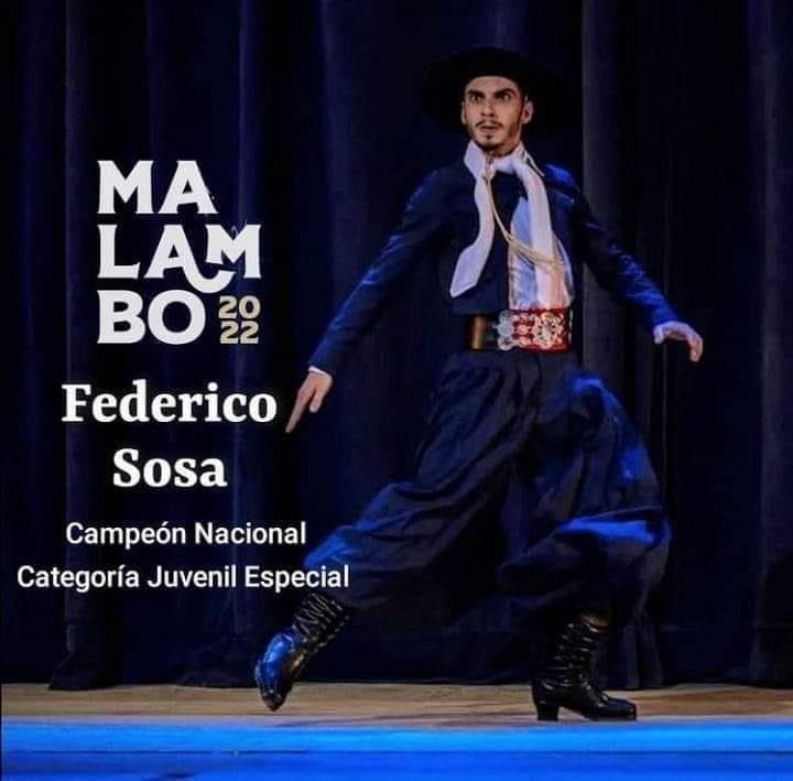 Federico Sosa tiene 18 años y vive con sus padres en una finca del distrito El Espino en el departamento de San Martín. Este fin de semana, su nombre fue ovacionado por los presentes en el Festival Nacional del Malambo, Laborde 2022. Acompañado por el profesor Adrián Aciar y Franco Ríos como entrenador, durante la semana entrenaron a doble jornada para demostrar el talento sobre el escenario. Dentro de la categoría Malambo Juvenil Especial, logró posicionarse como Campeón Argentino, superando ampliamente a los contendientes, representantes de todas las provincias.
