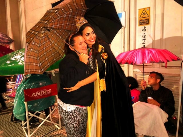 Ni la lluvia impidió la clásica reposera, el mate y una colcha para abrigar una larga noche en la vereda del Teatro Independencia. Hasta ese lugar llegó Natasha para saludar y compartir un café con mendocinos de todos los puntos de la provincia y turistas.