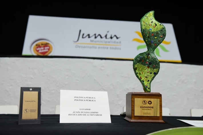 Gracias al impacto generado en materia de sostenibilidad con el reciclado de luminarias de sodio a LED, Junín fue premiado en esta novena edición del certamen, donde también integraron la terna final de la categoría la Municipalidad de Godoy Cruz, con su programa Ecocanje, y Convenciones y Parques de México, con Expo Verde #AhoraTeTocaATi.