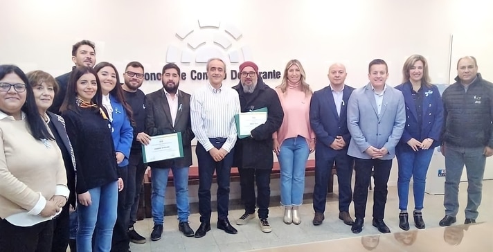 Roberto Tripolone, historiador, profesor de historia e investigador y Pablo Tello, director de la serie, acompañados por Eduardo Guidolín, Director de Producción Artística Municipal, recibieron la Resolución.