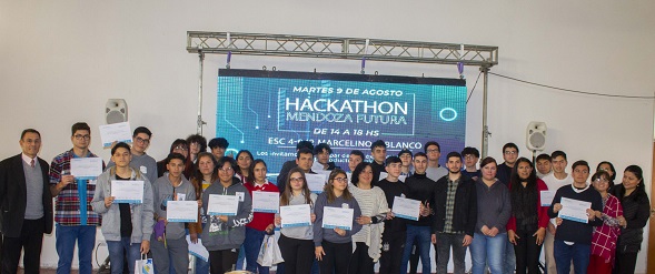Estudiantes de las escuelas secundarias del departamento expusieron sus proyectos de programación en el Hackathon de Mendoza Futura, que se realizó hoy en la Esc. N° 4-042 “Marcelino Héctor Blanco”.