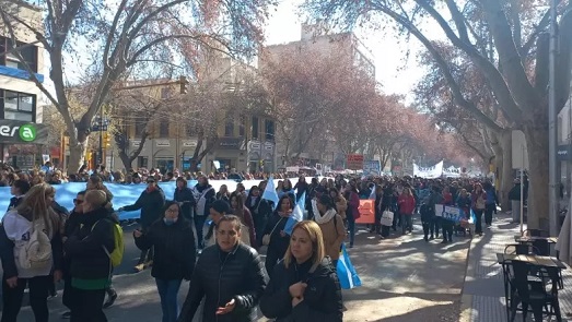 Distintos sectores de la provincia se unieron en una multitudinaria marcha de trabajadores. Mientras tanto, se lleva a adelante un paro de actividades de maestros. La medida de fuerza se realiza en el marco del segundo paro provincial del año impulsado por el sindicato docente en todas las escuelas, el cual arrancó el pasado lunes con una fuerte adhesión y se extiende hasta este miércoles por 72 horas. Hay un alto ausentismo de alumnos.