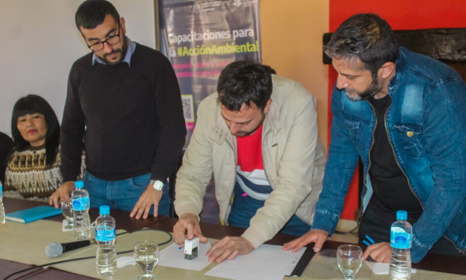 Esta acción se realizó a través de un Convenio firmado por el Director Nacional de Educación Ambiental y Participación Ciudadana, Guido Veneziale; el Secretario de Gobierno, Franco Gil, el Director de Ambiente y Ordenamiento Territorial, Enzo Montenegro; y la Coordinadora de Proyectos, Lourdes Barroso.