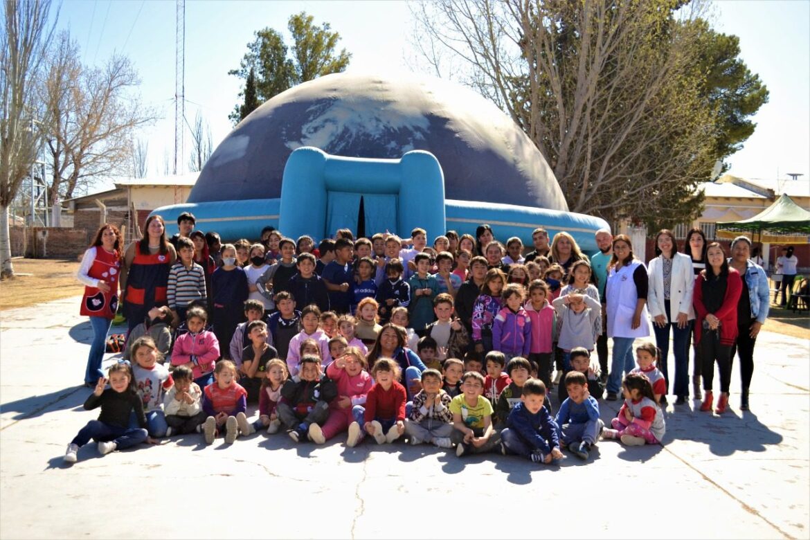 Con sus funciones de Dinosaurios, Universo, Cuerpo Humano, Medioambiente y Derechos Humanos, el Planetario Móvil, llegó a la Escuela Amador Rodríguez, de la localidad de Catitas Viejas para brindar intervenciones de 360°.