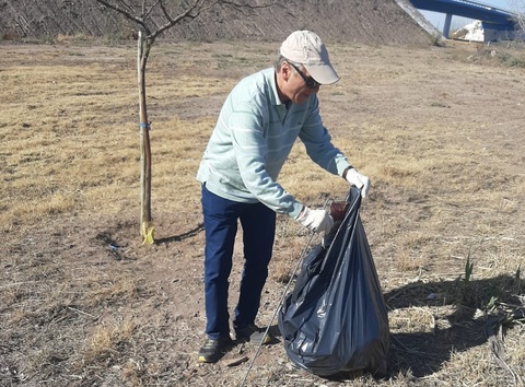 Con un pinche y una bolsa para juntar los residuos, mientras desarrollaba su tarea, recibió el saludo de los transeúntes que observaban sorprendidos al intendente en plena tarea de recolección de basura.