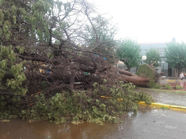 En Chapanay, la tormenta precipitó con granizo de gran tamaño en zonas cultivadas durante al menos dos minutos y los primeros datos señalan que hay una franja afectada de unos dos kilómetros, mientras que en Palmira, el fuerte viento provocó la caída de un árbol de gran tamaño en calle Italia, que afectó el balcón de una vivienda.