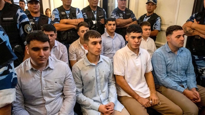 Antes, el abogado defensor de los rugbiers pidió que los ocho acusados puedan escuchar la sentencia de pie, lo que fue autorizado por el tribunal. Seis minutos después, se escuchó la pena máxima para cinco de los acusados y las otras tres condenas para los partícipes secundarios.