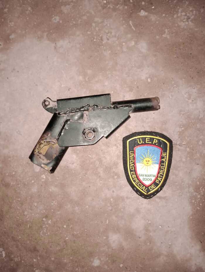Los uniformados se desplazaron al lugar y, al llegar a la calle Tropero Sosa y 16 de septiembre, aprehendieron a los sujetos y secuestraron un arma de fuego de fabricación casera, tipo tumbera.