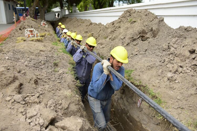 Se trata de obras subterráneas, con un tendido de más de 2240 metros de media tensión, con cable unipolar de aluminio, que va desde la estación transformadora por Ruta 50, hasta 9 de Julio y Boulogne Sur Mer, que es el centro de distribución del playón municipal.