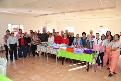 Los adultos mayores elaboran mantas tejidas que luego son entregadas a familias de bajos recursos del departamento.