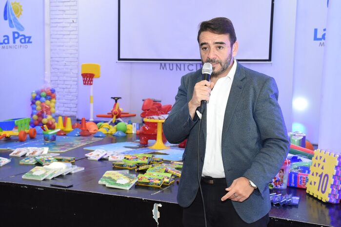 El intendente de La Paz, Fernando Ubieta, junto a la Directora de Educación, Ofelia Zuleta, entregaron equipamiento para los Centros Buena Cosecha de nuestro departamento. El encuentro tuvo lugar en el Salón de Actos Municipal.