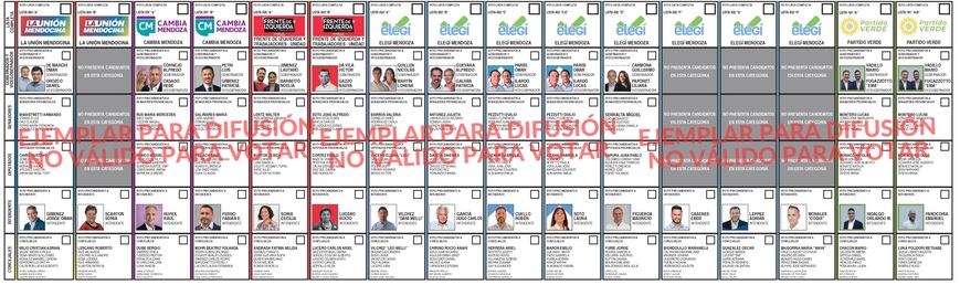 El Frente Elegí tendrá ocho precandidatos; Cambia Mendoza, dos; La Unión Mendocina, dos; el Frente de Izquierda Unidad, dos; y el Partido Verde, también tendrá dos.