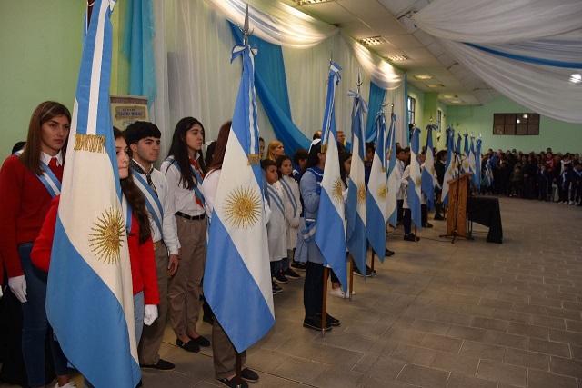El intendente de La Paz, Fernando Ubieta, encabezó este miércoles el acto del Día de la Bandera, en el Salón del Club Sportivo Juventud Unida. Allí, estudiantes de cuarto grado de realizaron la tradicional promesa de lealtad a la Bandera Nacional Argentina.