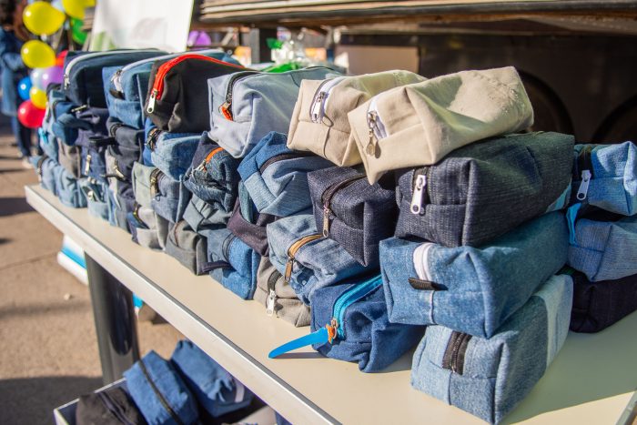 En un acto llevado a cabo en el Playón Municipal de la Ciudad de San Martín estudiantes de trabajos textiles del aula móvil de DGE (Dirección General de Escuelas) protagonizaron un gesto de solidaridad, al entregar 150 cartucheras a los alumnos del jardín nucleado 0 -178, de Alto Verde.