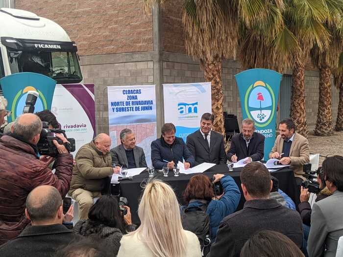 Rivadavia y Junín, firmaron un convenio junto al Gobierno Provincial y AySaM, para la ejecución de obras de cloacas que beneficiará a vecinos de ambos departamentos.