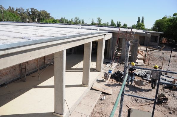 La firma encargada de los trabajos, Capsa SRL, terminó el llenado de la losa de techo en todos los bloques que componen el inmueble educativo, además de revoques internos y externos, entre otras intervenciones. También concluyó la colocación de pisos y carpintería metálica en puertas y ventanas.