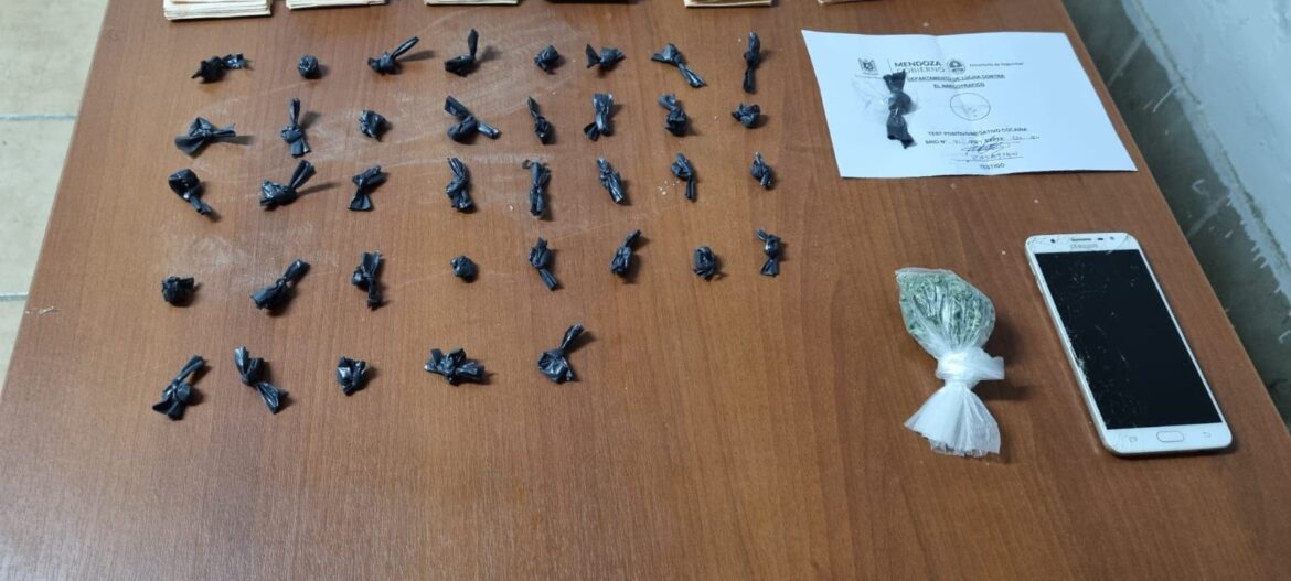 En el procedimiento, los uniformados secuestraron 38 envoltorios de nylon con cocaína (peso total de 10,2 gramos), una bolsa de nylon transparente conteniendo hojas de marihuana en proceso de secado (6 gramos), 123 mil pesos en efectivo y un teléfono celular.
