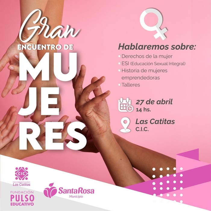 El próximo 27 de abril, a partir de las 14:00 hs, el Centro Integrador Comunitario (CIC) de Las Catitas será el escenario del un “Gran Encuentro de Mujeres”. Un evento que promete ser un espacio de reflexión, aprendizaje y fortalecimiento de la comunidad femenina.