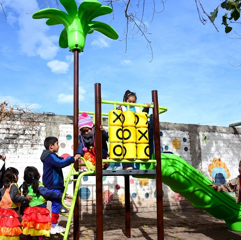 Este martes, en el marco del día de los Jardines de Infantes, la intendenta de Santa Rosa, Flor Destéfanis vistió la escuela Nº 1-507 Martín Gil en El Ramblón. Allí la jefa comunal entregó un tobogán con accesorios, para que los pequeños puedan disfrutar en los recreos.