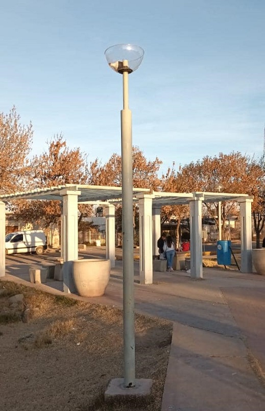 Los vándalos se llevaron luminarias, cables y provocaron destrozos en el sector del cartel del nombre de la plaza. “No cesan ni las roturas, ni los robos, ni nada” lamentó el director de Servicios Públicos de la Comuna, Raúl Tamagnone.