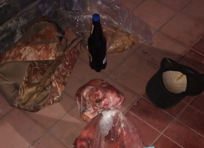 El hombre dueño del local manifestó a la policía que fuera del local comercial posee un frezzer donde los sujetos habrían dañado el seguro y del interior sustrajeron una caja con patitas de pollo y carne, lo cual fue recuperado.