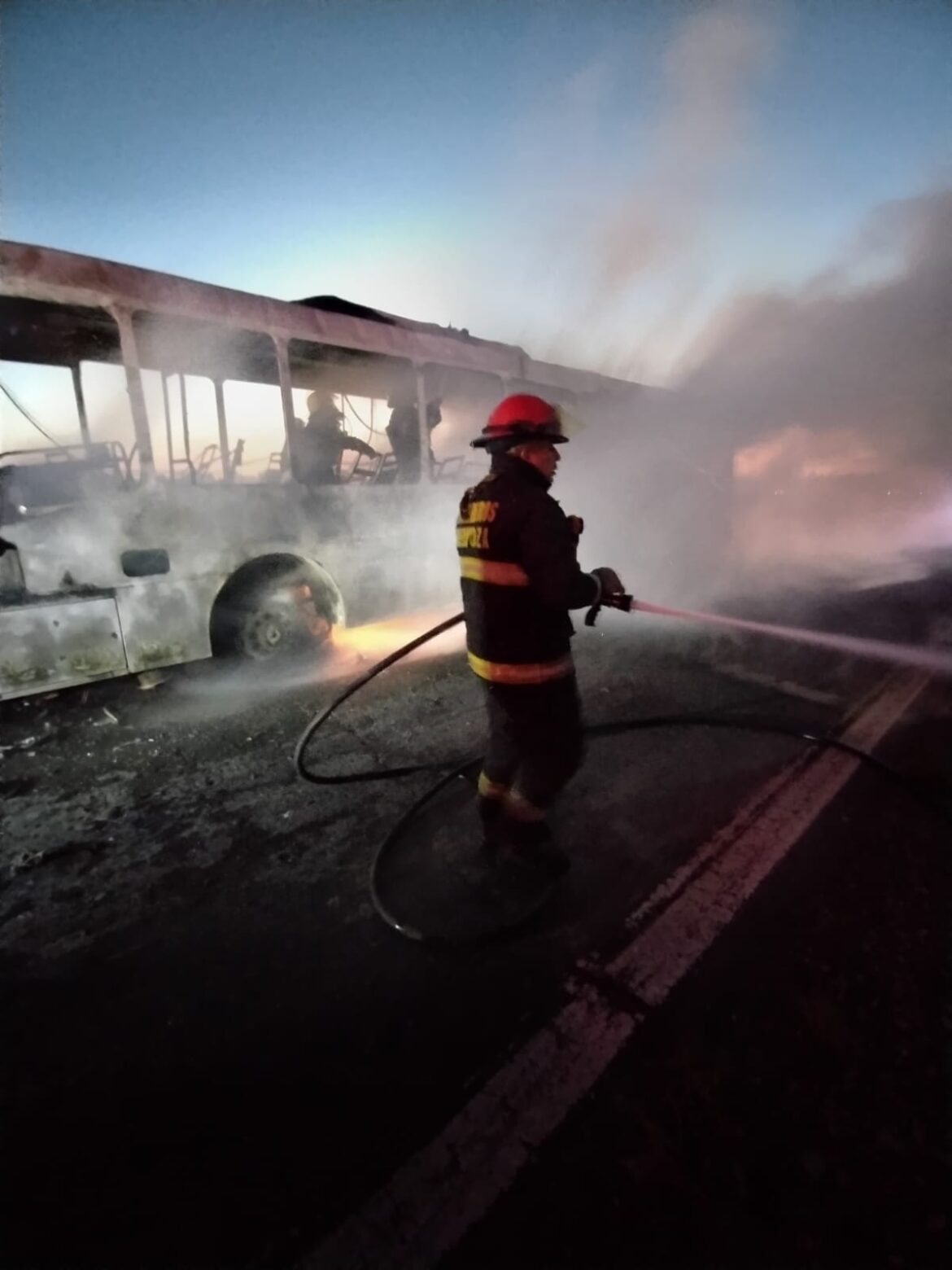 Bomberos sofocaron el fuego con afectación total del colectivo, no resultaron personas lesionadas.
