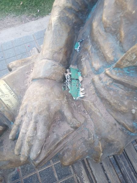 Un nuevo hecho vandálico se produjo anoche en casco urbano de la ciudad. Nuevamente fueron tras la escultura del General San Martín sentado en un banco, en el predio del Museo Histórico Municipal Las Bóvedas y la dañaron.