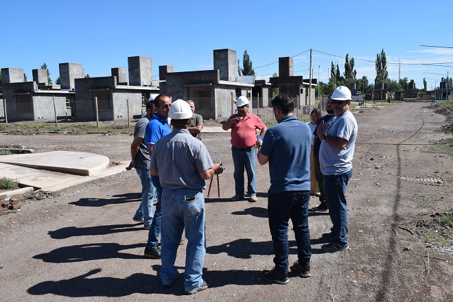 En la visita, se acordó un trabajo mancomunado entre el IPV, la empresa constructora y la municipalidad de Rivadavia para avanzar de manera eficaz en la construcción.