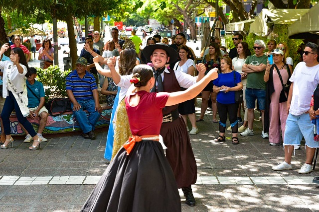En un vibrante despliegue artístico, la peatonal Sarmiento de la Ciudad de Mendoza se llenó de color y alegría con la presentación de “Vino de Diamantes”, la Fiesta Departamental de la Vendimia 2025 de La Paz. El intendente, Fernando Ubieta, las candidatas a Reina y Virreina de La Paz 2025, artistas locales e integrantes del Ballet Estable Municipal, cautivaron a vecinos y turistas, adelantando lo que será este espectacular evento cultural el próximo jueves 9 de enero a las 21, en el Estadio Juan Domingo Perón.