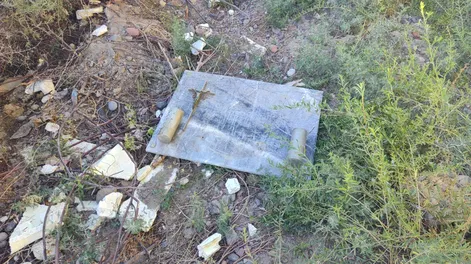 En la mañana de este viernes 21, un llamado anónimo al área de Defensa Civil dela Municipalidad de San Martín, alertó sobre un hallazgo extraño: en la calle Martínez, ya en la zona rural del departamento, había sido encontrado el frente de un nicho de cementerio, con sus dos floreros y un crucifijo incluidos, tirados al borde de esa calle de tierra.